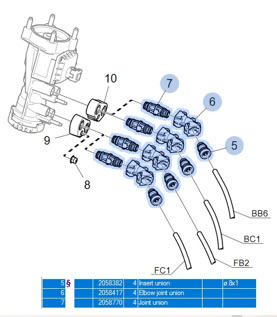 O que você vê? Sem união de inserção, cotovelo de engate e união conectora no módulo do freio de pé.