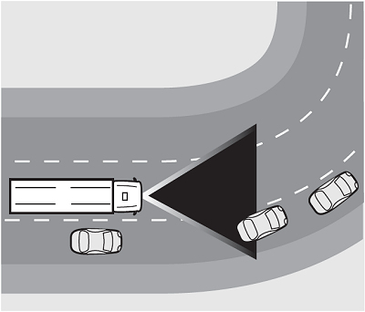 In Kurvenfahrten kann es für das AEB schwierig sein, den Straßenverlauf zu erkennen. Das AEB kann daher fälschlicherweise vor Fahrzeugen warnen oder nicht warnen.